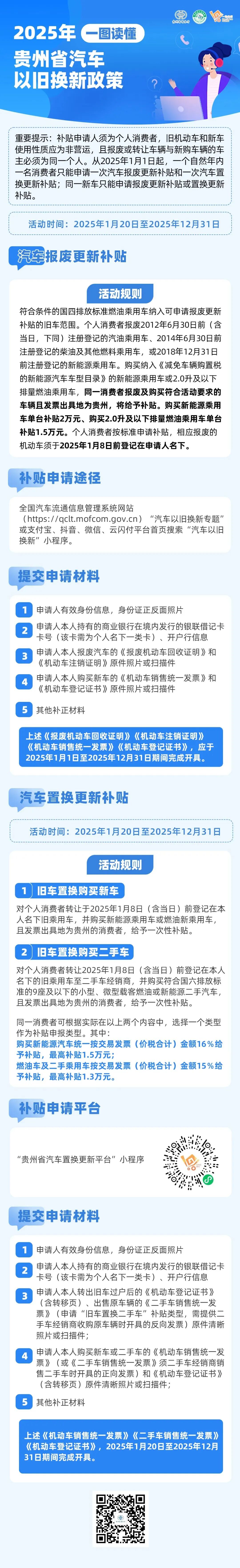 一图读懂2025年贵州省汽车以旧换新补贴政策